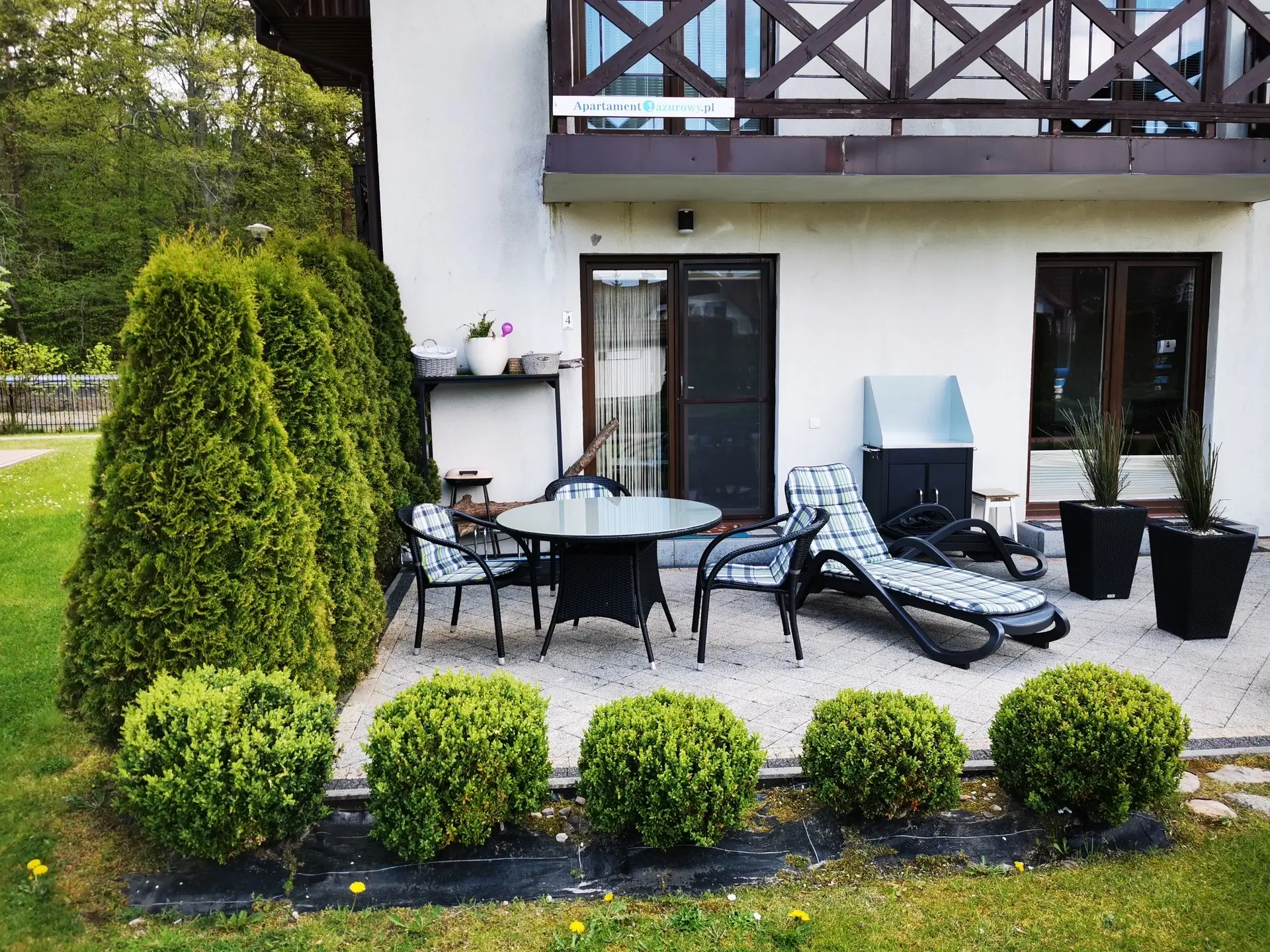 Mieszkanie jest w pełni wyposażone: zmywarka, pralka, lodówka z zamrażalnikiem, płyta indukcyjna, piekarnik, ekspres do kawy, drobne AGD, telewizor, internet światłowodowy, kino domowe i miniwieża. Goście mają również do dyspozycji duży taras z meblami ogrodowymi, leżakami, parasolem i grillem. Na osiedlu można korzystać z licznych atrakcji: podgrzewanego basenu z brodzikiem, kortu tenisowego, boiska do siatkówki plażowej, siłowni plenerowej oraz stołu do ping-ponga.