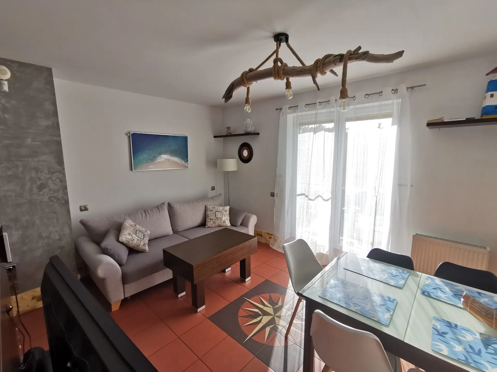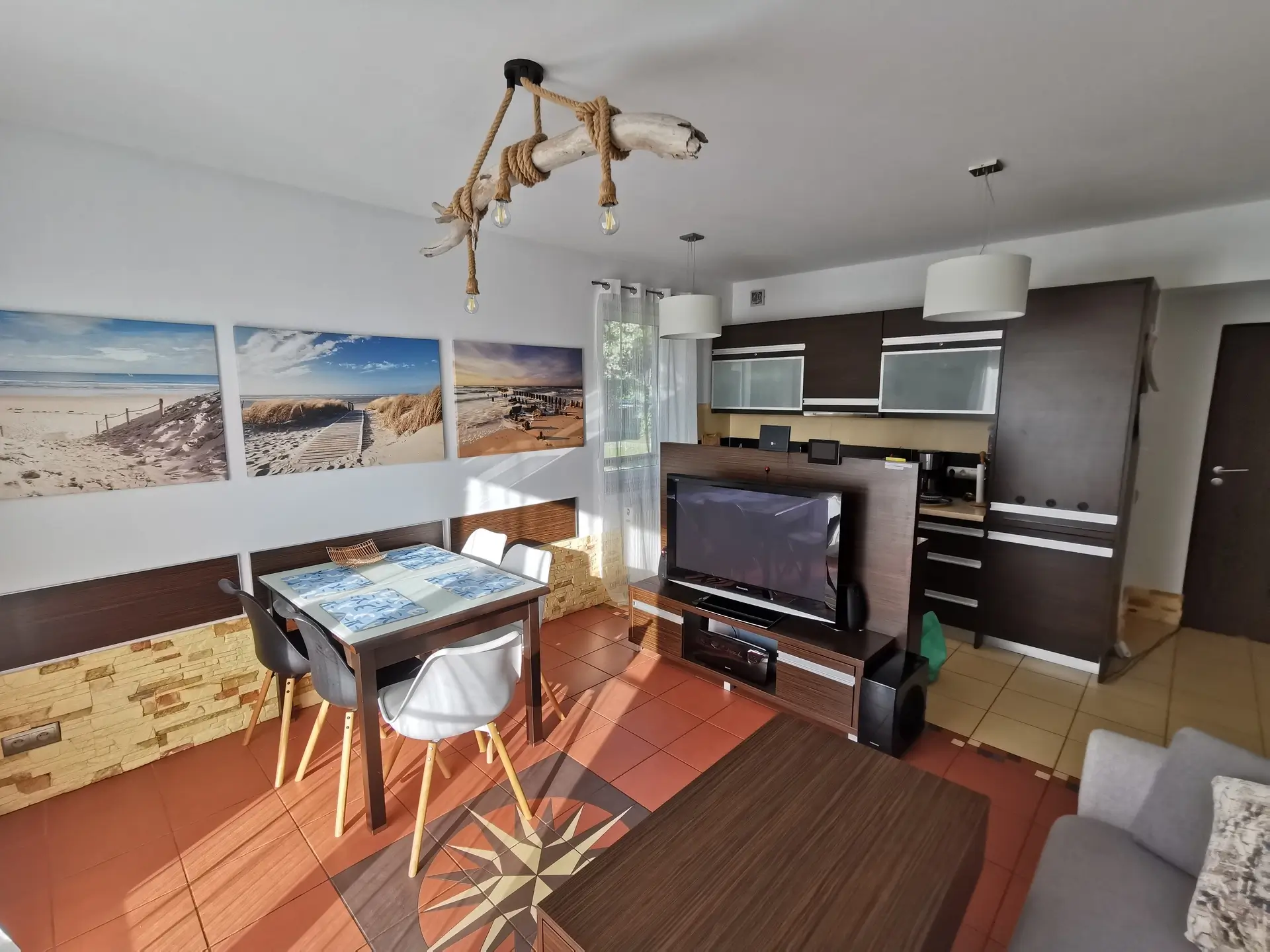 RÓŻA WIATRÓW to przestronny apartament na parterze zamkniętego osiedla Łebska Ostoja w miejscowości Żarnowska, tuż obok Łeby. Mieszkanie o powierzchni 46 m² składa się z salonu z wydzielonym aneksem kuchennym, osobnej sypialni, przestronnej łazienki oraz przedsionka. Niezależne wejście bez konieczności korzystania ze wspólnej klatki schodowej zapewnia pełną prywatność. Apartament może komfortowo pomieścić do 6 osób – do dyspozycji gości jest wygodna sofa w salonie, piętrowe łóżko dla 3 osób w sypialni oraz hotelowa dostawka z materacem.
